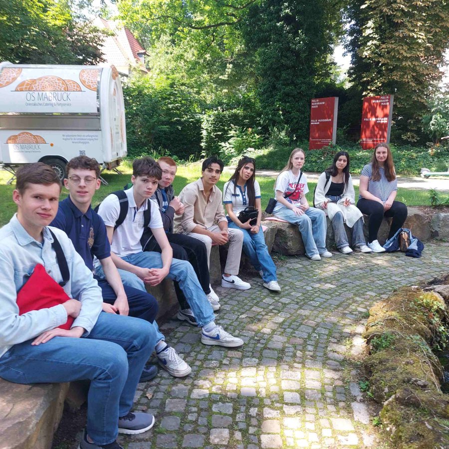 Am 12.6.25 haben die Schüler*innen der Klasse 10b einen Ausflug nach Osnabrück gemacht. Im Rahmen des Politik- und Geschichtsunterrichts haben sie zunächst das Museumsquartier Osnabrück besucht, um dort die Ausstellung des jüdischen Malers Felix Nussbaum anzusehen, der von den Nationalsozialisten in Auschwitz ermordet wurde. Anhand seiner Zeichnungen und Malereien konnten die Schüler*innen sein Schicksal nachverfolgen. Nach einem Mittagessen in der Mensa erklärte der Jurist Ole Becker, welche Möglichkeiten es gibt, um die Demokratie zu schützen. Durch Fallbeispiele zu dem Thema „Gewaltenteilung“ wurde den Schüler*innen der Unterschied zwischen einer Diktatur und einer Demokratie verdeutlicht. Der Ausflug half den Schüler*innen, geschichtliche Ereignisse besser zu verstehen und die Bedeutung der Demokratie im Alltag zu erkennen.