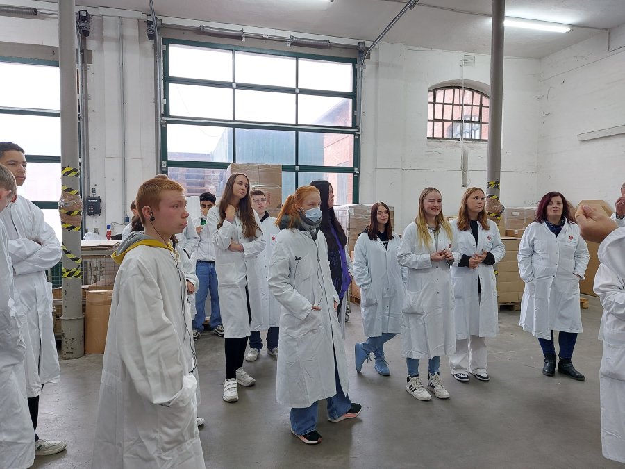 Am 17.10. haben die 9.ten Klassen die Firma Sitex besichtigt. Der Betrieb verleiht und wäscht Textilien für Krankenhäuser, Pflegeheime und für Lebensmittelbetriebe. Ausgestattet mit weißen Kitteln und Headsets ging es mit Moritz Schäpsmeier gleich los in die Werkshallen mit den riesigen Waschmaschinen. Die saubere Wäsche wird über ein Transportsystem unter der Decke weitergeleitet und in den verschiedenen Abteilungen getrocknet, gefaltet und für den Transport verpackt. Am Tag werden 40 Tonnen Wäsche gewaschen. Jedes Wäscheteil ist gekennzeichnet, so dass es immer wieder richtig den Kunden zugeordnet werden kann. Auch wenn viele Arbeiten schon von Maschinen erledigt werden, ist auch noch Handarbeit gefordert, z.B. beim Zusammenlegen der OP-Wäsche. Für die 9. und 10. Klassen ist jederzeit ein Praktikum bei Sitex auch in der Werkstatt oder in der Näherei möglich, hat Herr Schäpsmeier den Schüler*innen versichert.