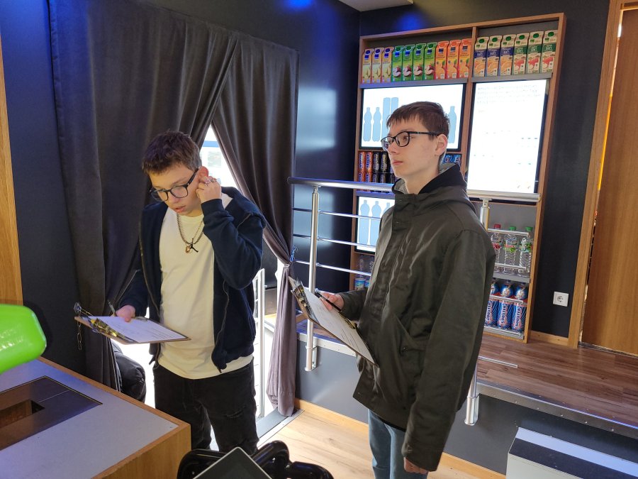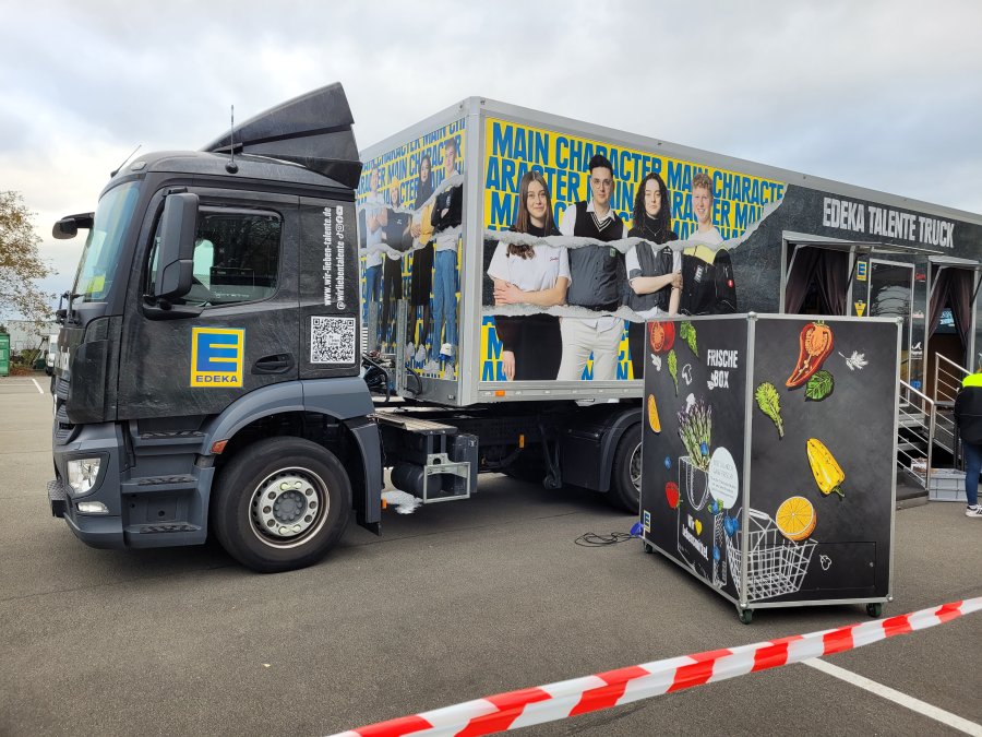Am 03.11.23 wurden die Klassen 9 und 10 von dem Talente-Truck auf dem Gelände der EDEKA in Minden erwartet. Im Vordergrund standen Einblicke in die Berufswelt des Einzelhandels. An verschiedenen Stationen mussten Pet-Flaschen und Dosen auf Zeit einsortiert, unterschiedliche Artikel gescannt werden, sowie Lebensmittel geschätzt und anschließend abgewogen werden. In einem kleinen 3-D Kino reisten wir in unterschiedliche Landstriche der Erde, von denen die Edeka Artikel und Produkte bezieht. Die Nachhaltigkeit wurde werbewirksam und anschaulich vermittelt.